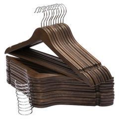 【在庫セール】ELONG HOME 木製ハンガー 滑り止め凹みとズボンバーが付いた衣類ハンガー 型崩れ防止 360度回転薄型洋服ハンガー スーツ・シャツ・ジャケット・コート用 30本組セット 褐色