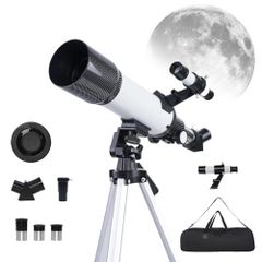 天体望遠鏡 口径70mm 焦点距離500mm 初心者&家族向け 子供&大人 天文屈折望遠鏡 AZマウント 高性能多層コーティング スマホ対応 対角ミラー キャリングバッグ ワイヤレスリモコン ホワイトt