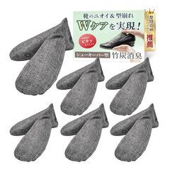 【お掃除・収納のプロが推薦】 靴 消臭 除湿 シューキーパー型 竹炭 消臭剤 下駄箱消臭 ハナマル良品 (グレー/6足セット) 0