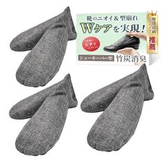 【お掃除・収納のプロが推薦】 靴 消臭 除湿 シューキーパー型 竹炭 消臭剤 下駄箱消臭 ハナマル良品 (グレー/3足セット) 0