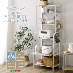 レンジラック6段 さわやか 調節可能 スライド棚付き ハイタイプ 60cm幅 キッチン 収納 スマート