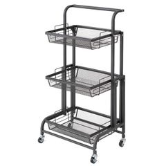 収納ラック キャスター付き キッチンワゴン A型パイプ 三段 四段 取っ手付き 隙間収納 バスケット キッチン収納 ランドリー収納 多目的ラック キッチンラック アウトレット おしゃれ 簡単組み立て