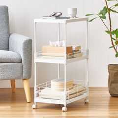 【新着商品】ドウシシャ サイドテーブル キッチンワゴン ランドリーワゴン キャスター付き スリム 白 ホワイト 3段 幅30cm×奥行45cm×高さ74.5cm CPS4530-WH マットな質感 オシャレ 可愛い 可動棚板 着脱簡単 落下防止柵付き 天板 デ