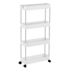 スリム 隙間収納 13cm 収納ラック キャスター付き キッチンワゴン 収納カート ローリングラック おしゃれ 調味料 食品 ペットボトル SPACEKEEPER 小物 台所 洗面所 冷蔵庫横 4段 ホワイト