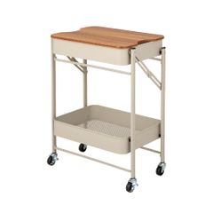 新品 シービージャパン ワゴン 2段 グレージュ [完成品] キャスターを取り付けるだけ キッチンワゴン 天板付き 調味料ラック 折り畳める2段ワゴン Amely