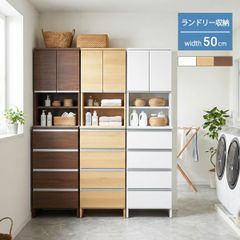 【新品】ランドリー収納 スリム 幅50cm 高さ180cm ハイタイプ キャビネット 日本製 スリム収納 縦型 引出 シンプル 幅49cm 「才:13」