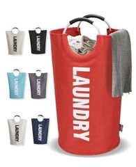 防湿 (赤 防汚 収納バッグ クローゼット 脱衣所 寝室 コインランドリー 洗濯袋 洗濯物収納 82L) 取っ手付き 軽量 撥水加工 折りたたみ式 洗濯かご 大容量 ランドリーバスケット