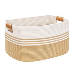 多用途 インテリア 鉢カバー 収納バスケット 衣類収納 お風呂 ぬいぐるみ入れ 安全 軽量 持ち運びやすい 天然コットン シンプル 大容量 イエロー 織り込み レザー取っ手 幅55x奥行43x高さ30cm ランドリーバスケット ロープバスケット VECELO