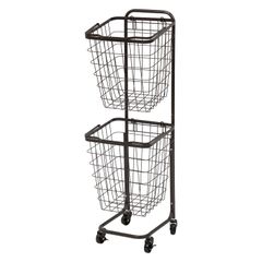 新品 萩原(Hagihara) ランドリーラック バスケット 脱衣 洗濯物 かご 2段 【取り外し・積み重ねOK】 大容量 ランドリーワゴン ワイヤー キャスター付 ダークブラウン KR-3970DBR