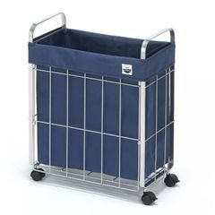 新品 サンカ ランドリーバスケット 折りたたみ キャスター付き サンバッサ 25L ネイビー (幅39.5×奥行き20.5×高さ48.4cm) SUN&WASSER (サンバッサ) ワイヤー 撥水加工 ストッパー付きキャスター おしゃれ コンパクト 収納 洗濯