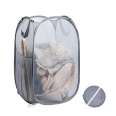 家庭用 旅行 おもちゃ収納 取っ手付き 壁掛け 収納 プール 大きめ 洗濯物カゴ グレー 洗濯物入れ ランドリー収納 軽量 メッシュ 丈夫 ランドリーバスケット 洗濯カゴ 大容量 折りたたみ ランドリーバッグ [Senteria]