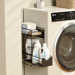 すき間ワゴン ランドリーラック スパイス収納 調味料 省スペース すき間ラック 洗面所 キッチン 冷蔵庫横収納 取り付け不要 引き出し付き ブラック 2段 マグネット収納ラック 洗濯機横