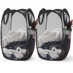 ブラック ハンドル付き 1つのパッケージ 持ち運びやすく軽量 収納バスケット メッシュランドリーバスケット スペースを節約 折りたたみ式ランドリーバスケット