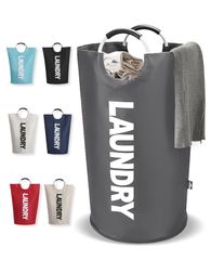 【在庫セール】防湿 防汚 収納バッグ クローゼット 脱衣所 寝室 (ダークグレー コインランドリー 洗濯袋 洗濯物収納 取っ手付き 軽量 90L) 撥水加工 折りたたみ式 洗濯かご 大容量 ランドリーバスケット
