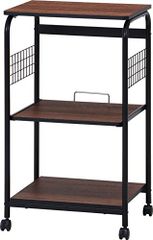 不二貿易 レンジ台 キッチンラック 幅51.5×41×高さ89.5cm ブラック ブラウン スライド棚 収納 レンジワゴン キャスター付き 15423p