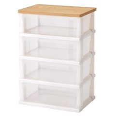 天馬(Tenma) お部屋に馴染む木製天板付きの衣装ケース 日本製 簡単組立 木製天板ストッカー4段 簡易キャスター付きで移動がラクラクなチェスト 収納ケース 引き出し【簡単組立】【幅55×奥行40×高さ79cm】pms