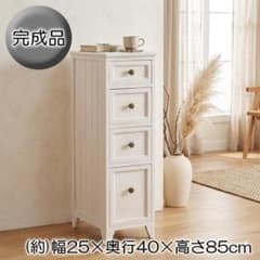 シャビーホワイトのスリムチェスト 4段 桐製 アンティーク調 幅25cm