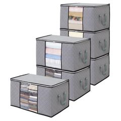 新品 アストロ 活性炭消臭 羽毛布団 衣類 収納ケース 6個組 活性炭のチカラで消臭保管 持ち手付きで持ち運びや移動がしやすい 通気性の良い不織布がホコリなどの汚れをガード 透明窓付き 服 毛布 布団収納袋 ボックス 衣装ケース 奥行40cm 蓋付き グレー