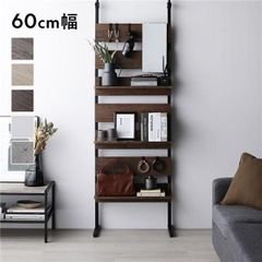 突っ張り ウォールラック 〔 60cm幅 ブラウン×ブラック 〕 ミラー付き 壁面収納 棚 賃貸OK 組立品