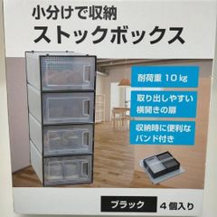 ストックボックス ブラック 4個入り×2セット 計8個 収納ボックス 横開き 扉付き 積み重ね可能 小分け収納 靴収納 クローゼット 押入れ 整理整頓 バンド付き 耐荷重10kg 88271-8-①-005T