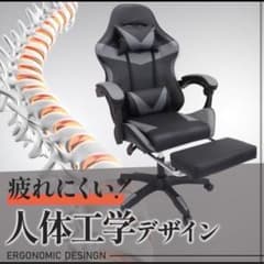 新品 ゲーミングチェア オフィスチェア デスクチェア オットマン付き グレー