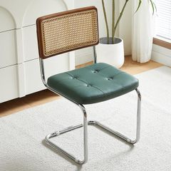 ダイニングチェア ラタン 食卓椅子 籐編み 学習椅子 木製 コーヒーチェア カフェチェア 背もたれ付き 肘なし 北欧風 おしゃれ レトロ 軽量 金属製の足 合成革 お手入れ簡単 リビング 在宅ワーク 組立簡単 (ブラウン(背もたれ)xダークグーリン(PUpms
