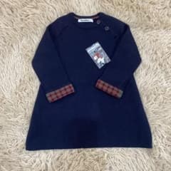 ファミリア ワンピース セーター ニット 赤チェック 90 ネイビー