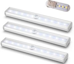 人感センサーライト 電池式 屋内 10LED 明るい 自動点灯 消灯 省エネ マグネット貼り付け式 配線不要 補助灯 足元灯 室内 お手洗い 廊下 階段 クローゼット 玄関に最適 3個入り (昼白色)
