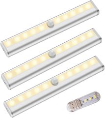 人感センサーライト 電池式 屋内 10LED 明るい 自動点灯 消灯 省エネ マグネット貼り付け式 配線不要 補助灯 足元灯 室内 お手洗い 廊下 階段 クローゼット 玄関に最適 3個入り (電球色)