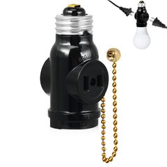 【数量限定】チェーン付き、仕事場、車庫、物置、廊下、地下室などの場所にご使用いただけます、黒い、1個入り。 E26用ソケット+コンセント2口 1灯2差ソケット E26口金 Aiwode
