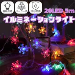 イルミネーションライト 雪の結晶 カラフル ソーラー式 防水 20LED 5m
