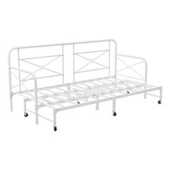 新入荷|デイベッド フレームのみ パイプベッド シングルベッド ソファベッド 伸長式ベッド セミシングル シングル セミダブル ダブル 長さ200cm 北欧 おしゃれ 2way お客用ベッド 耐荷重250kg マットレスは別売り 【ホワイト】