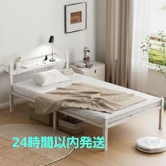 【新品・未開封】 ベッドフレーム シングル パイプベッド コンセント付き 宮付き