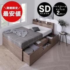 【最安値】セミダブルベッド 収納ベッド マットレス付き 2点セット 新品送料込