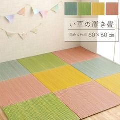 い草 置き畳/ユニット畳 〔約70×70×1.5cm グリーン 4枚組〕 無地調 抗菌 防臭 消臭 調湿 縁無し 防滑 〔リビング〕