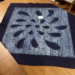藍染と絞りの花模様マルチカバー、風呂敷 ネイビー、紺、未使用