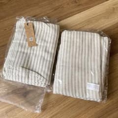 新品 ストライプ生地 セット ホワイト マルチカバー インド製 コットン 綿
