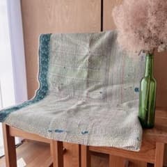 未使用*ヴィンテージラリーキルト ソフトグリーン マルチカバーカンタ