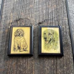 ゴールデンレトリバー 小型タペストリー ウッドフレーム ヴィンテージ USA仕入