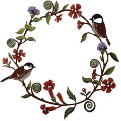 小鳥 北欧 草花 壁 模様 ガーデン ラウンド 玄関 デザイン 装飾 ドアリース インテリア ナチュラル アンティーク レトロ 壁掛け 小鳥 アイアンリース