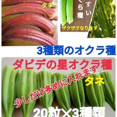 3種類のオクラ種 赤オクラ ダビデの星 白ヒスイ 各20粒 少し多めにいれます