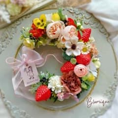 母の日 リース いちご 春 淡ピンク ナチュラル フラワーリース 玄関 ギフト