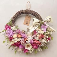 春色ピンクリース☆ドライフラワー ナチュラル 玄関リース ギフト プレゼント