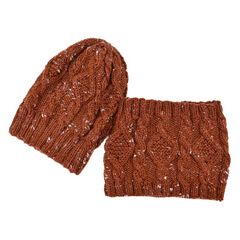 【新品】 NASKA あみものキット ダイヤとケーブル模様の帽子とスヌード (エブリデイマルチカラーツィード 使用) 赤茶色系 KT-2 デザイン 釣谷京子