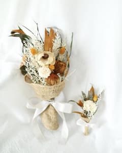 ナチュラルウェディングブーケブートニア付き 上品ドライフラワー 前撮り・フォト婚