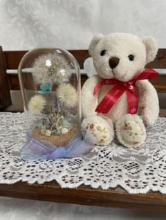 母の日限定‼️くまさん付きたんぽぽ綿毛のガラスドーム