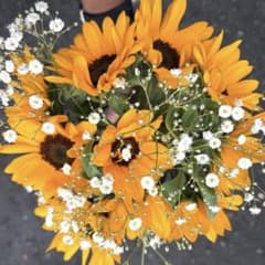 【74】生花 ヒマワリ カスミ草 アレンジ 花束 ブーケ ヴィンセントオレンジ