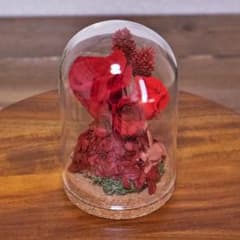 ガラスドームに入ったお花 手のひらサイズの プリザーブドフラワー RED