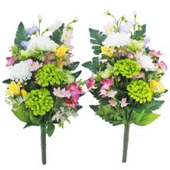 新品 山久 造花 仏花 ポンポンダリアとデルフィニウムの花束 グリーン 一対 約43cm お墓 仏壇 CT触媒(消臭分解・防汚)加工 シルクフラワー お彼岸 お盆 お供え btb