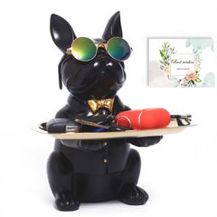 3in1 クリエイティブ 犬小銭ボックス 飾り 貯金箱 眼鏡&ステンレス鋼の皿付 お皿 面白い犬オーナメント クリエイティブ犬キー収納トレイ 鍵置き 正規品 眼鏡/リモコン/化粧品/キャンディーなど小物収納 Haodeliy ジュエリー収納にも活躍 置物 母の